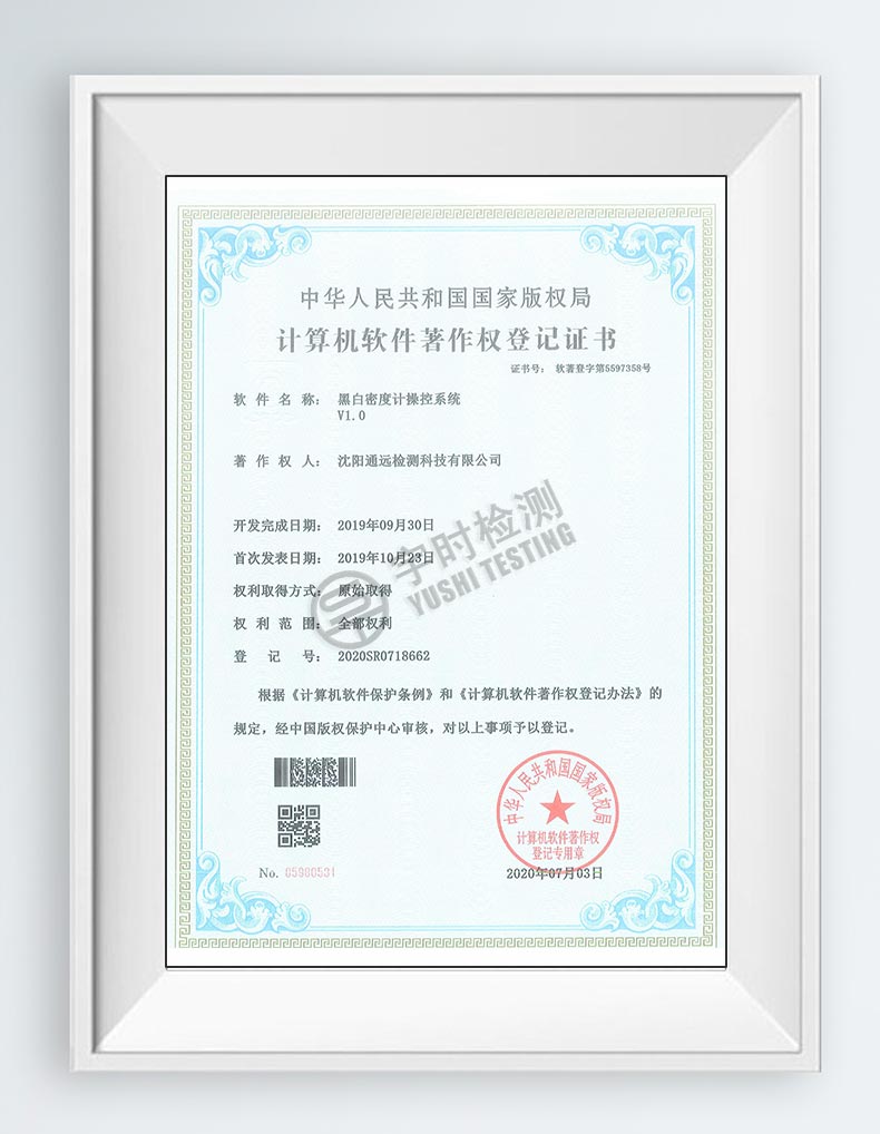 黑白密度計(jì)操作系統(tǒng)著作權(quán)證書