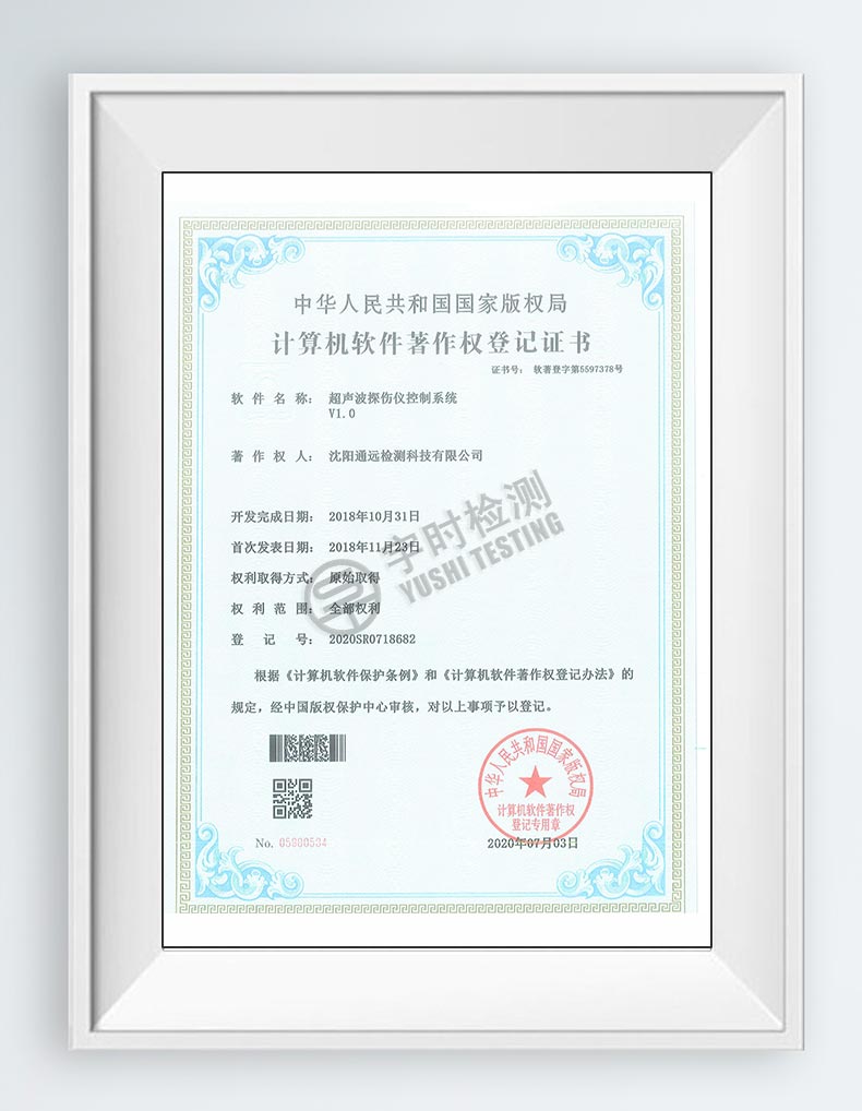 超聲波探傷儀控制系統(tǒng)軟件著作權(quán)證書