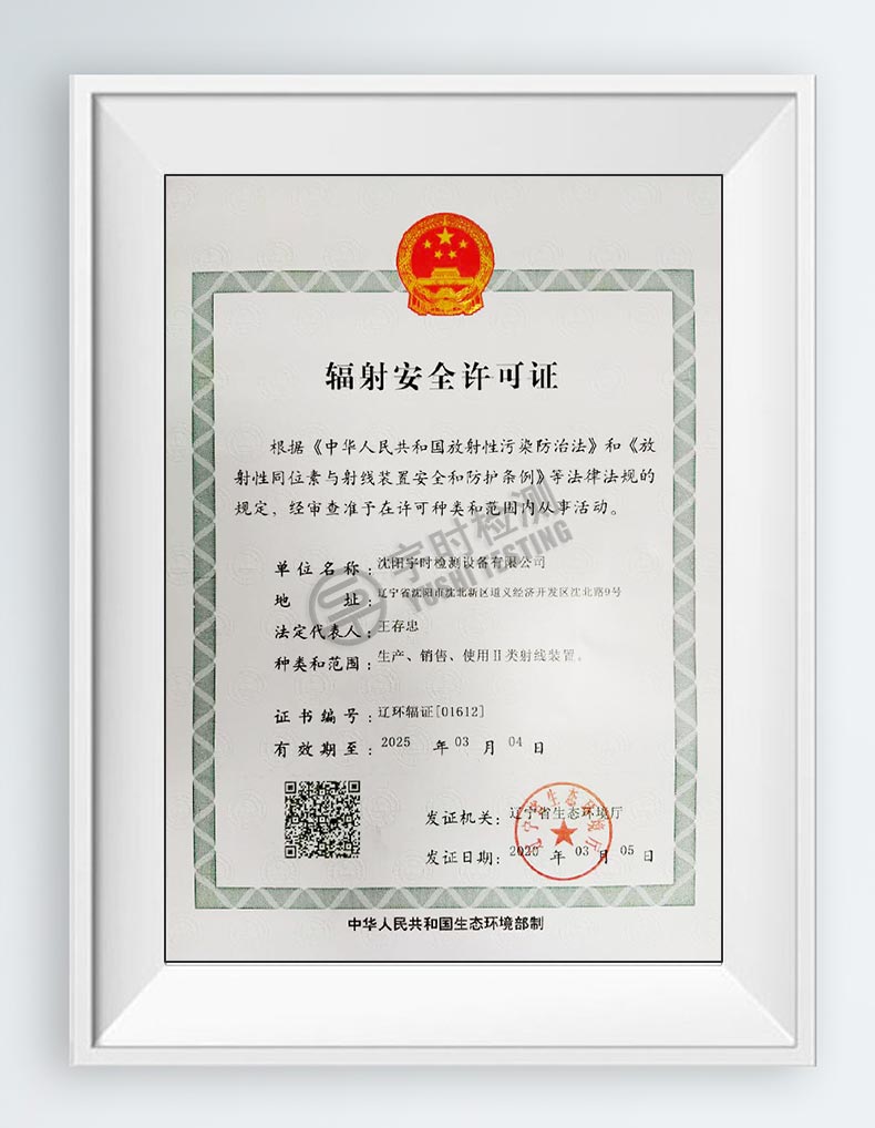 宇時(shí)檢測(cè)輻射安全許可證
